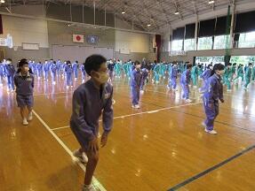 今日の6校時に、体育館で体育祭の全体練習を行いました。各クラスの団長・副団長の紹介があった後に、ダンスの要素を取り入れた準備運動(北中体操)の練習を行いました。自分たちの手で体育祭を作り上げていくことを期待します。