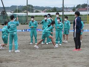 体育祭総合練習の時、準備係のマリの片付けを見ていると、コンテナ2つを持っている2年生女子に2年生男子が近づき1つを代わりに持ってあげました。すると1つを持ってもらった女子が片付け終わると、別の2つ持っている2年生女子に近づき1つを持ってあげました。助け合っているとてもよい光景でした。