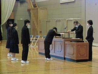 第1学期終業式後、全クラス学級活動で通信票を渡していました。1年生にとっては初めての通信票です。様子を少しだけ見てきました。ちょっとだけ緊張している様子でした。
