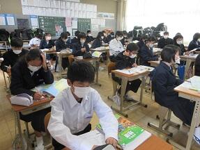昨日の6時間目、3年3組の音楽の合唱コンクールの練習を見ているとき、一人の男子生徒が声がなかなか出ないようで、必死に目を閉じて歌っている姿が目に留まりました。クラスのために頑張っているその姿に、ちょっと感動しました。担任に伝えて褒めてもらおうと思います。