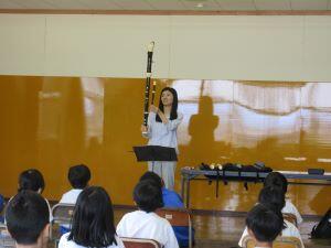 最後にアルトリコーダーやバスリコーダー等、様々なリコーダーを紹介していただきました。いつも見ているリコーダーの何倍も大きなリコーダーに子供たちは驚き、歓声を上げていました。大きさによって音色が違うことにもしっかりと気付いていました。最後には、講師の先生の演奏に合わせて、歌を歌う子供たち。楽しい時間を過ごすことができました。