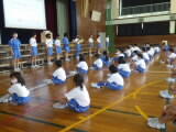 万葉タイムに全校の子供たちが体育館に集まり、児童集会を開きました。