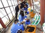 今回は、前回デザインを写した貝に着色し、「貝切り」「貝貼り」の作業に挑戦しました。