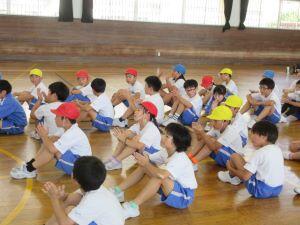1,2年生混合チームで転がしドッジボールをしました。力強いボールを投げる2年生。さすがです。しかし1年生も負けていません。積極的にボールをキャッチして投げていました。後半はボールが2個に増え、一段と活発にゲームが進みました。