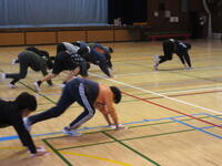 軽快なBGMにのって、寒さに負けず楽しく練習しています。