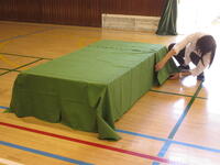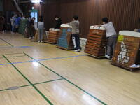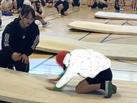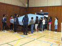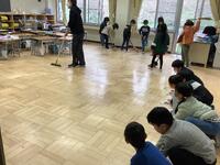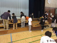 今日は、体育館の床の掃除とマットや跳び箱などを片付けた後、