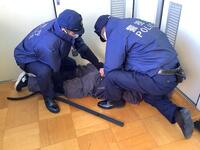 本日、社会科の学習の一環で消防団の出前授業を実施しました。