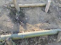 始めに学校菜園で育てたさつまいものつるを使って、リース本体を作成しました。