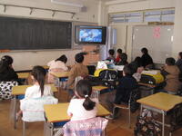 全体の話の後、各クラスで学年の発達段階に応じた、NHK for School の番組を視聴し