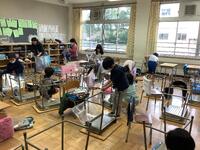 行いました。5時間目に6年生が、机や椅子、パネル等を搬入し、各学年の
