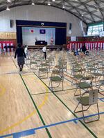 7時40分の開始時刻前から、受付には児童の行列ができました。
