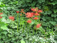 そのほかにも、斜面には真っ赤な彼岸花が咲き始めました。水辺には、