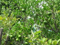 実をつけていました。今は、緑色のミカンがたくさん実っています。