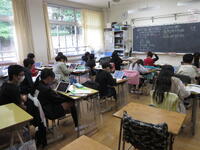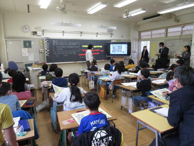 授業です。先生の自己紹介を聞きながら、最初は緊張していた子供たちも、