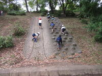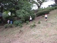 愛和小には、校庭に法面があり子供たちが上って遊ぶことができます。