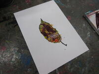 どの色とどの色を混ぜると、落ち葉の色に近づくか試行錯誤しながらの色づくり。