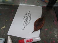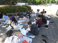 4年生の図工の授業は、落ち葉をスケッチして色を塗る学習でした。