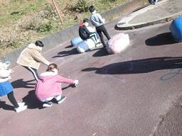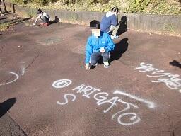 愛宕第1、2、3、4公園と上之根公園の5か所に行き、スプレーなどで様々なメッセージや絵を描き、思い出作りをしました。
