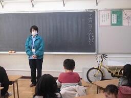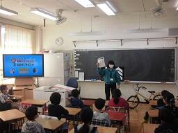 例年ですと多摩川沿いにある「多摩市交通公園」に出かけて、交通安全教室を体験してくるのですが、今年は、出張授業で実施しました。12月1日には2年生、12月3日には1年生がそれぞれの教室で交通安全教室を受けました。