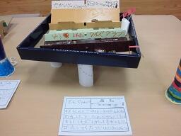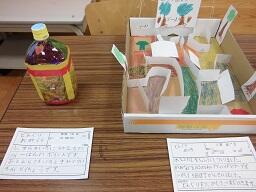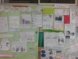 実際に防災備品があるところを調べたり、防災グッズを作ったりしました。自分たちで考えた防災カルタも展示してあります。