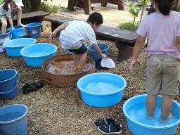 がんばったご褒美に、足湯ならぬ「足冷や水」で癒されました。