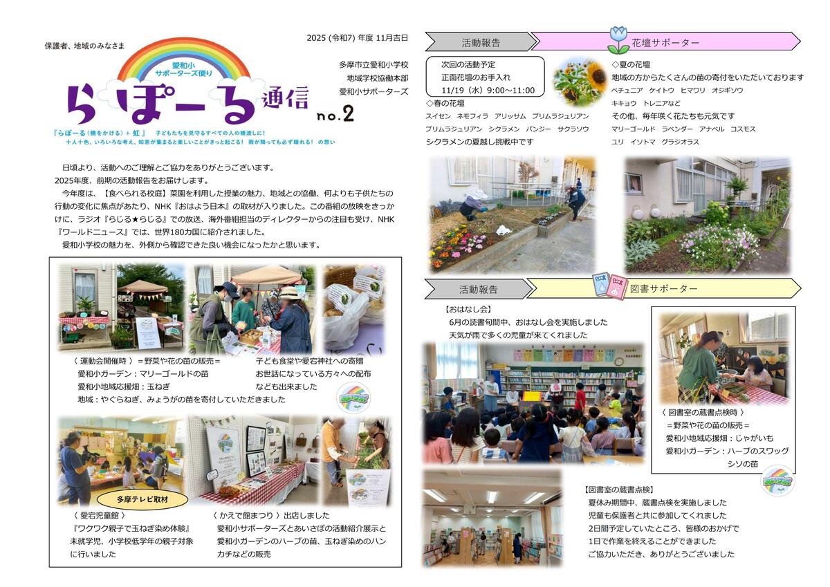 『令和7年度愛和小サポーターズ便り(らぽーる通信)No.2』が完成しました。