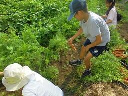 朝集合し、にんじんを採りました。まさに朝採れ野菜ですね。