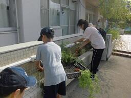 今日は、地域の「ひじり館夏まつり」に環境委員会