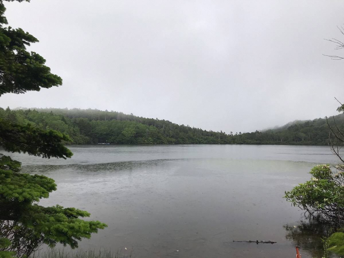 ハイキングを進める中、降雨に見舞われ、予定していた高見石小屋付近ではなく、駐車場に戻っての昼食となりました。