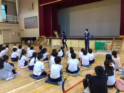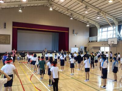 4、5年生合同の4軍に分かれ競技を行い、どの軍も協力して勝利を目指していました。競技中は、武士や忍者になりきり楽しむことができました。
