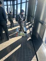 東京タワーの展望台から東京都の様子を見渡し、土地の使われ方について学びました。天気がよかったため、遠くまでよく見えました。