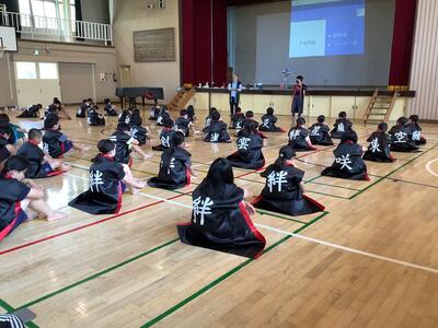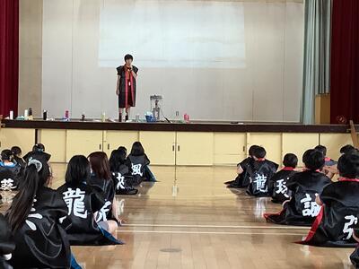 自分の好きな文字を書いたハッピを着て、体育館に集まり最終調整をしました。