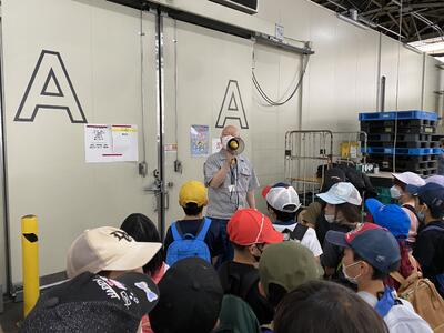 東京都中央卸売市場多摩ニュータウン市場に見学に行ってきました。暑い中でしたが、どの子も大きな市場の中を興味深く見学していました。特別に、冷蔵室の中にも入らせていただきました。