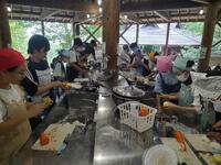 体調不良者、数名が宿で休んでいますが、その他は林業体験をしています。