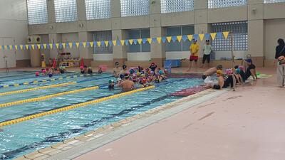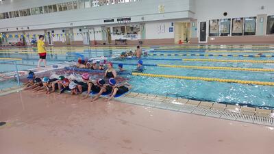 今日のアクアブルーでの水泳は、一般の方と一緒に利用する日です。「周りの方に気を配り、静かに喋らず着替えをするよ」と伝えると素早く上手に着替えができました。公共施設での振る舞いも合わせて学べるようにしたいです。