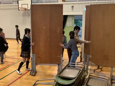 発表終了後は、次の学年が会場を使えるように、素早い撤収を練習していました。