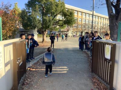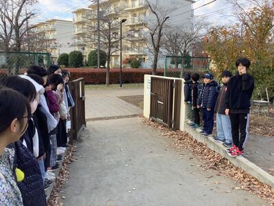 また、時間の経過とともに合唱団以外の子どもたちも加わり、元気な挨拶の声が飛び交いました。
