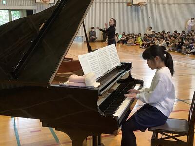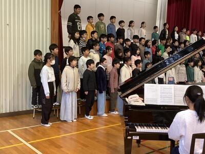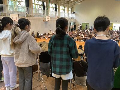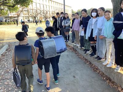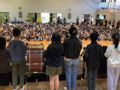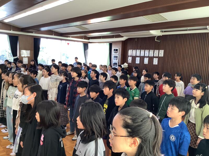 もう一つのエピソードとして、音楽発表会に出発する5年生に対して教室の窓から応援の声をかけてくれた6年生のことを紹介します。