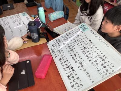 今日分かったことや、次の授業の発表に向けて前向きになれたことなどが、本時の振り返りとして発表されて、授業が終了しました。