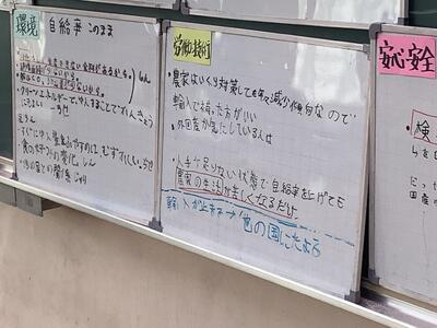 互いの考えを共有した後で、日本の食料生産のためには何が大切なのか、をみんなでまとめました。