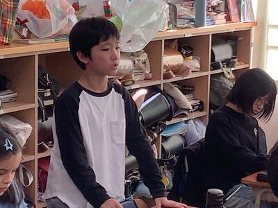 本校からは、尾山 颯 さんが代表児童として発表をしました。