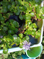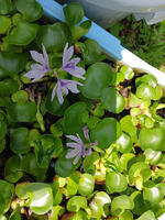 メダカの産卵用に活用しているホテイアオイに薄紫色の花が咲きました。
