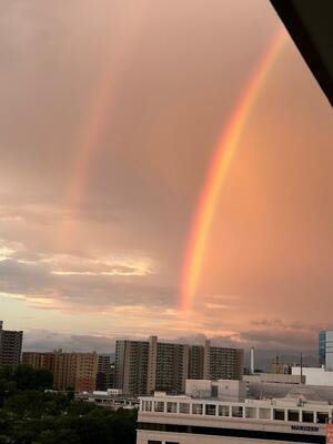 本日早朝、多摩センター上空にきれいな虹がかかりました。