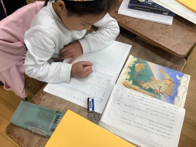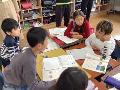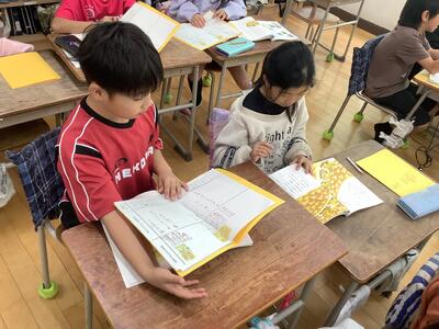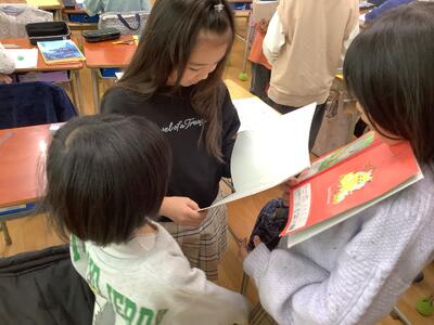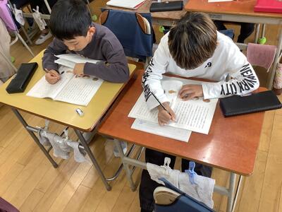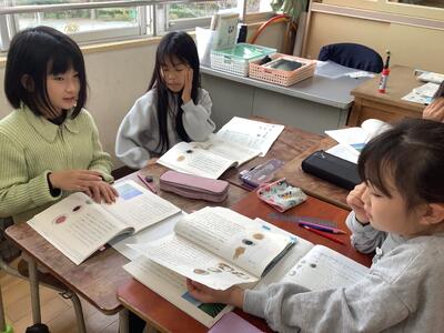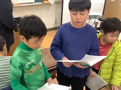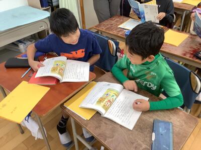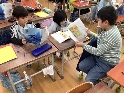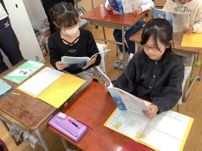 ペアやトリオで交互に音読します。