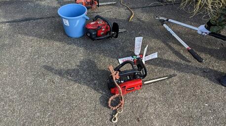 おやじの会OBの中には造園関係でお仕事をしていらっしゃる方がいて、クライミングのハーネスを使い安全に作業していただきました。