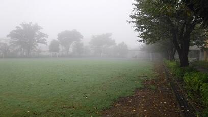 白い霧の中へ入ってみたい気持ちでしょうか、昇降口へ向かう前に校庭へ入っていく子がとても多かったです。