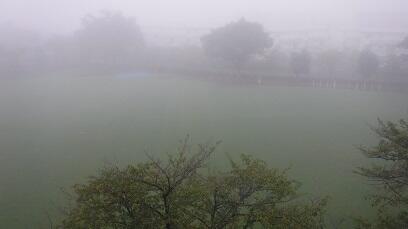 霧の発生原因は様々あるようですが、早朝の雨による一定量の水蒸気と、明け方の気温低下、さらに強い風が吹かなかったことだと考えられます。