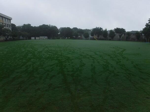 芝生の校庭に出ると、高原の朝のようです。幻想的な気分に浸れました。
