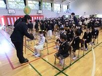 式後、記念写真を撮影しました。今年は時間短縮のため、児童だけで写真を撮りました。