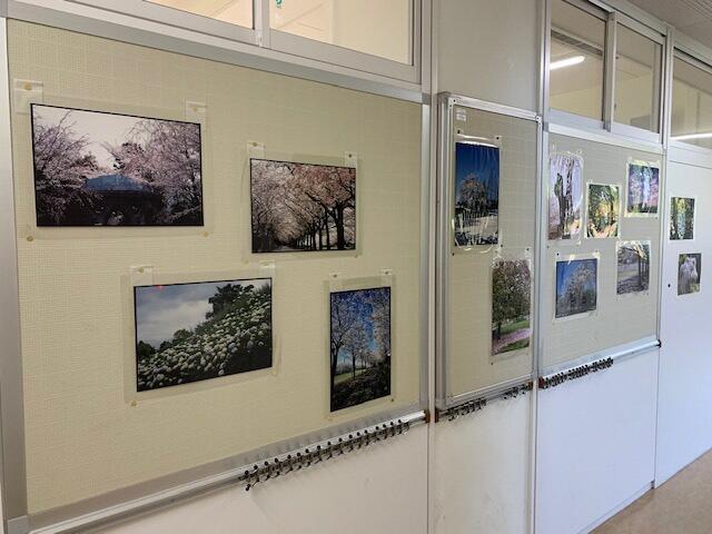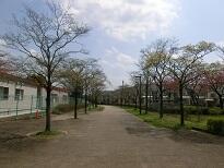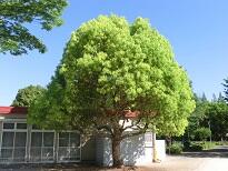 学校の職員玄関の前と学校南側遊歩道の「そよかぜの道」の街路樹の